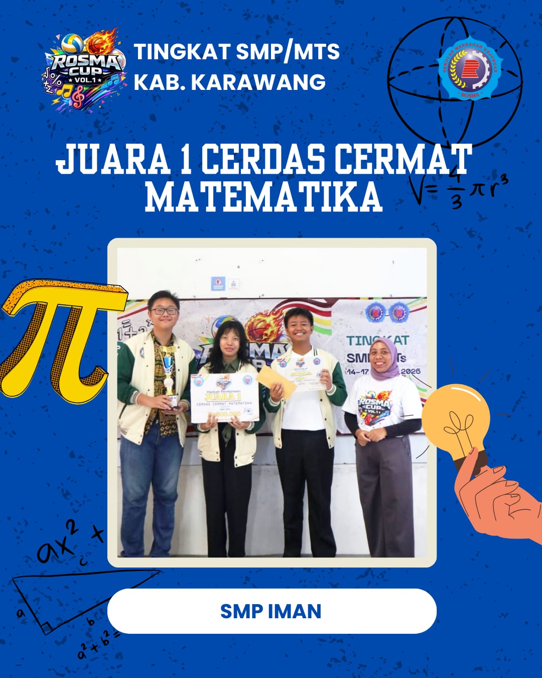Juara Cerdas Cermat Matematika Rosma Cup Vol. 1 tingkat SMPNMTs Juara 1 diberikan Kepada SMP IMAN