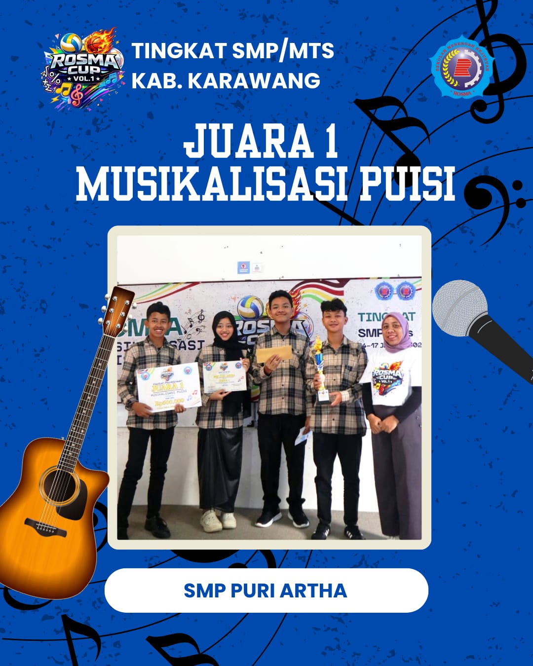 Juara Musikalisasi Puisi Rosma Cup Vol. 1 tingkat SMPNMTs Juara 1 diberikan Kepada SMP PURI ARTHA